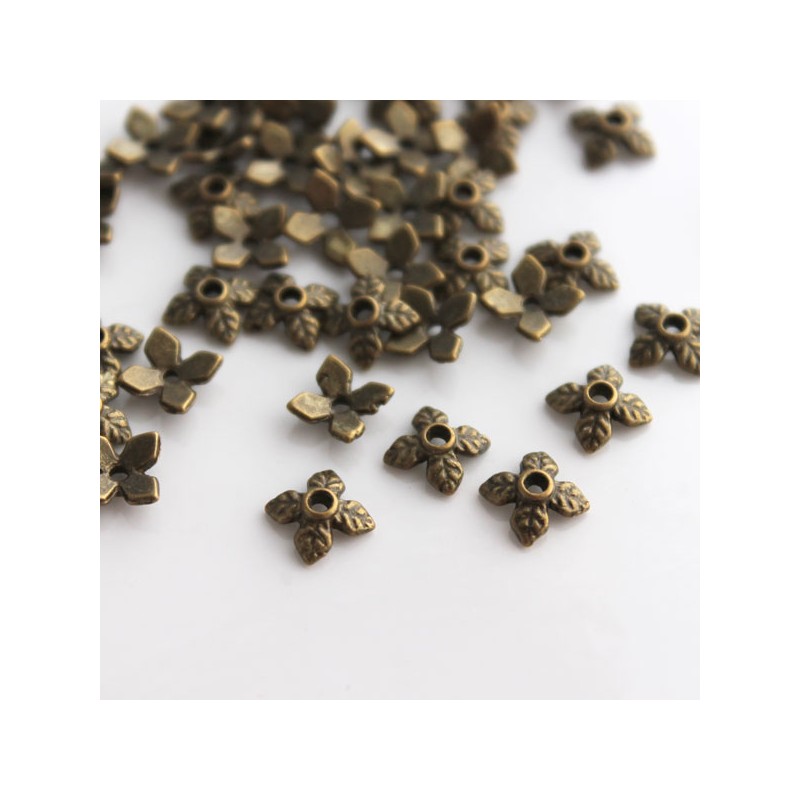 Pack of 60 bronze tone leaf pattern bead caps. These lovely bead caps measure approx 6mm across, with a depth of approx 2mm.