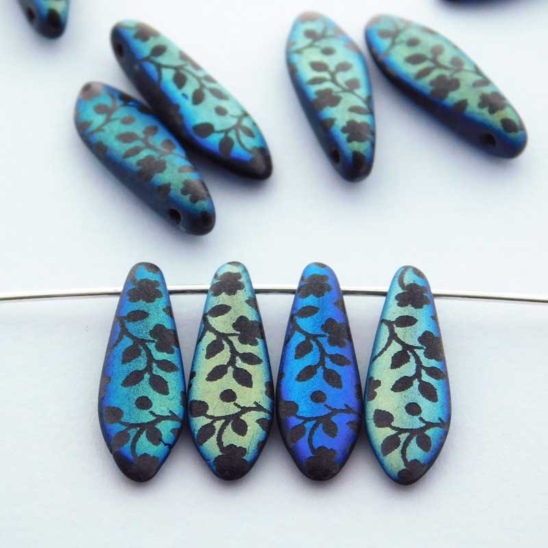 These Czech pressed glass dagger beads have a single hole, top drilled (side to side). Ideal for embellishments or for a fringe.