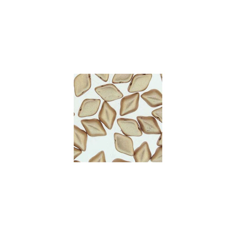 5g pack (approx. 34 beads) of GemDuo beads from Matubo, diamond shape with a flat bottom and a slightly doomed top with two holes at each end of the bead. The clean cut edges let the beads sit together with almost no gaps between the beads.