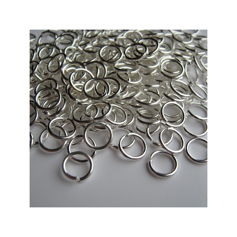 Pack of 100 7mm silver plated open jump rings, essential findings for jewellery making.