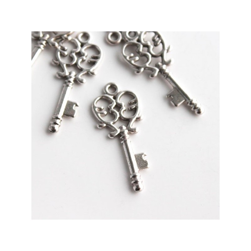 Pack of 2 lovely ornate key charms in an antique silver tone finish.