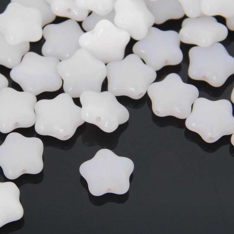 Pack of 25 alabaster white Czech pressed glass star beads.